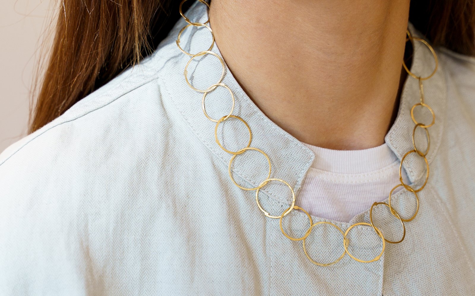 The necklace is forged from 925 silver wire and then electroplated with a layer of 750 yellow gold.