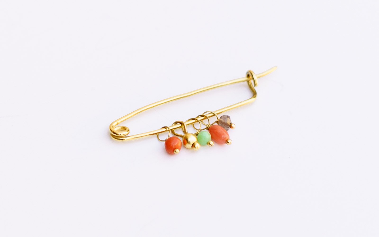 Handcrafted gold pin that can be fitted with different charms. It can be made in different sizes.