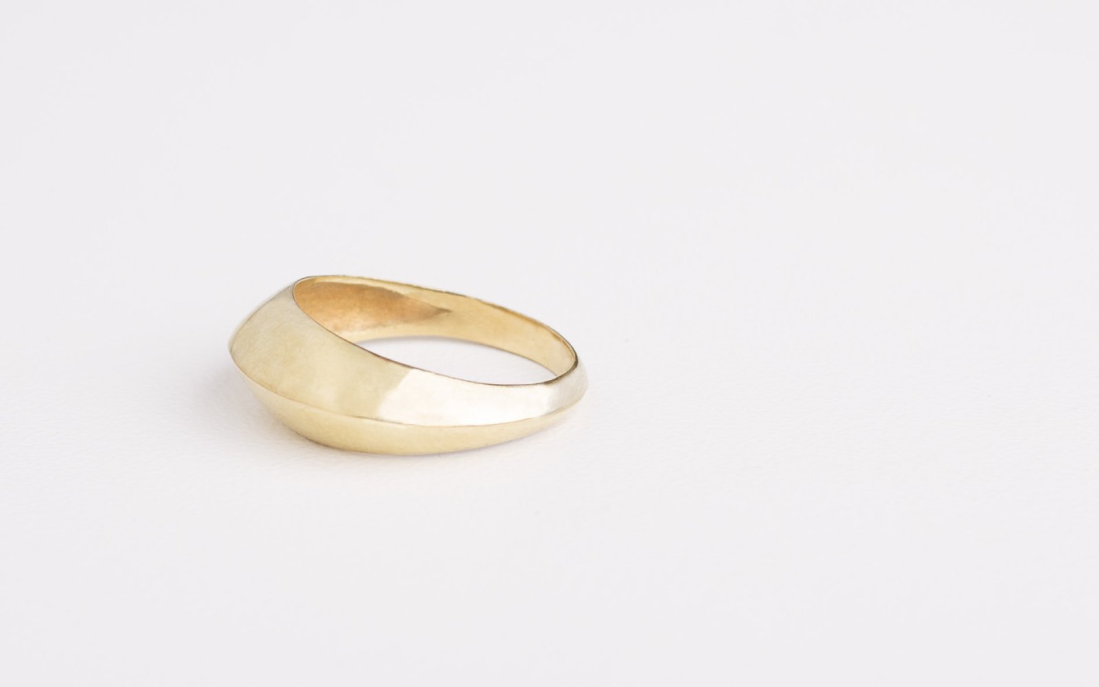 Ring in the shape of a crest in 18 ct gold. The ring, worked with the lost wax technique, is internally hollow with a thickness of 1 mm. The surface is semi-gloss.