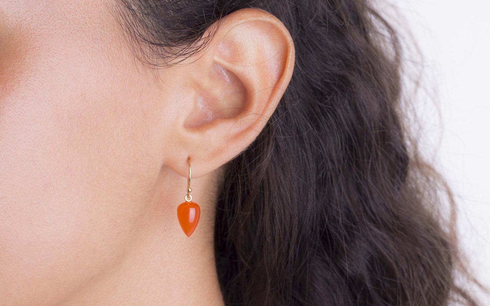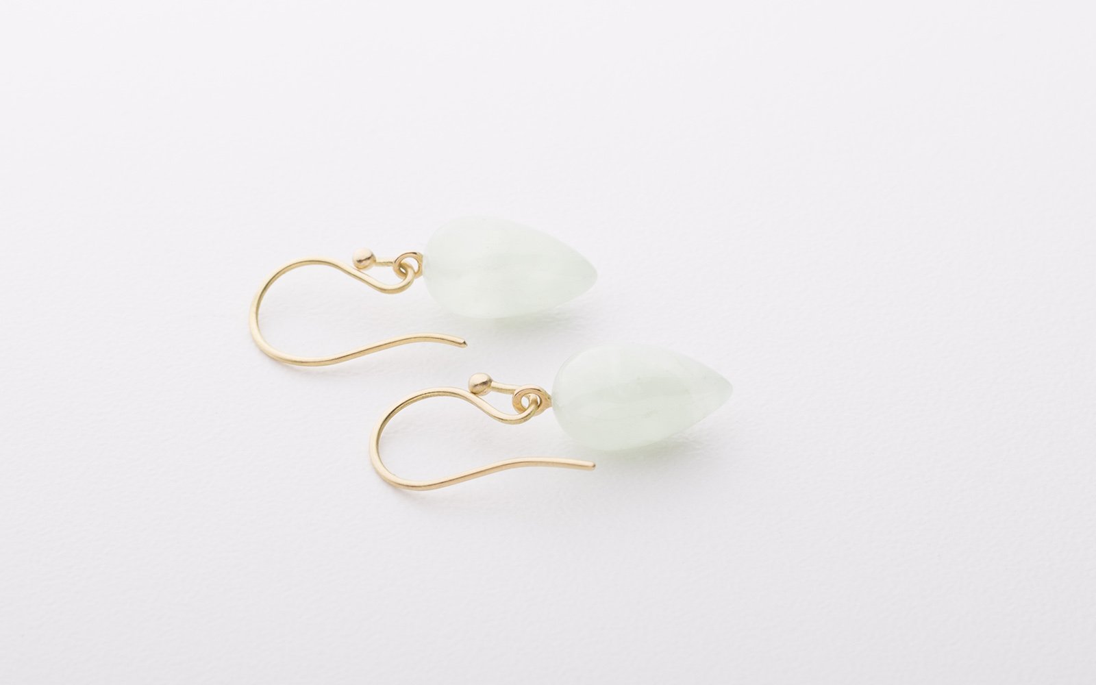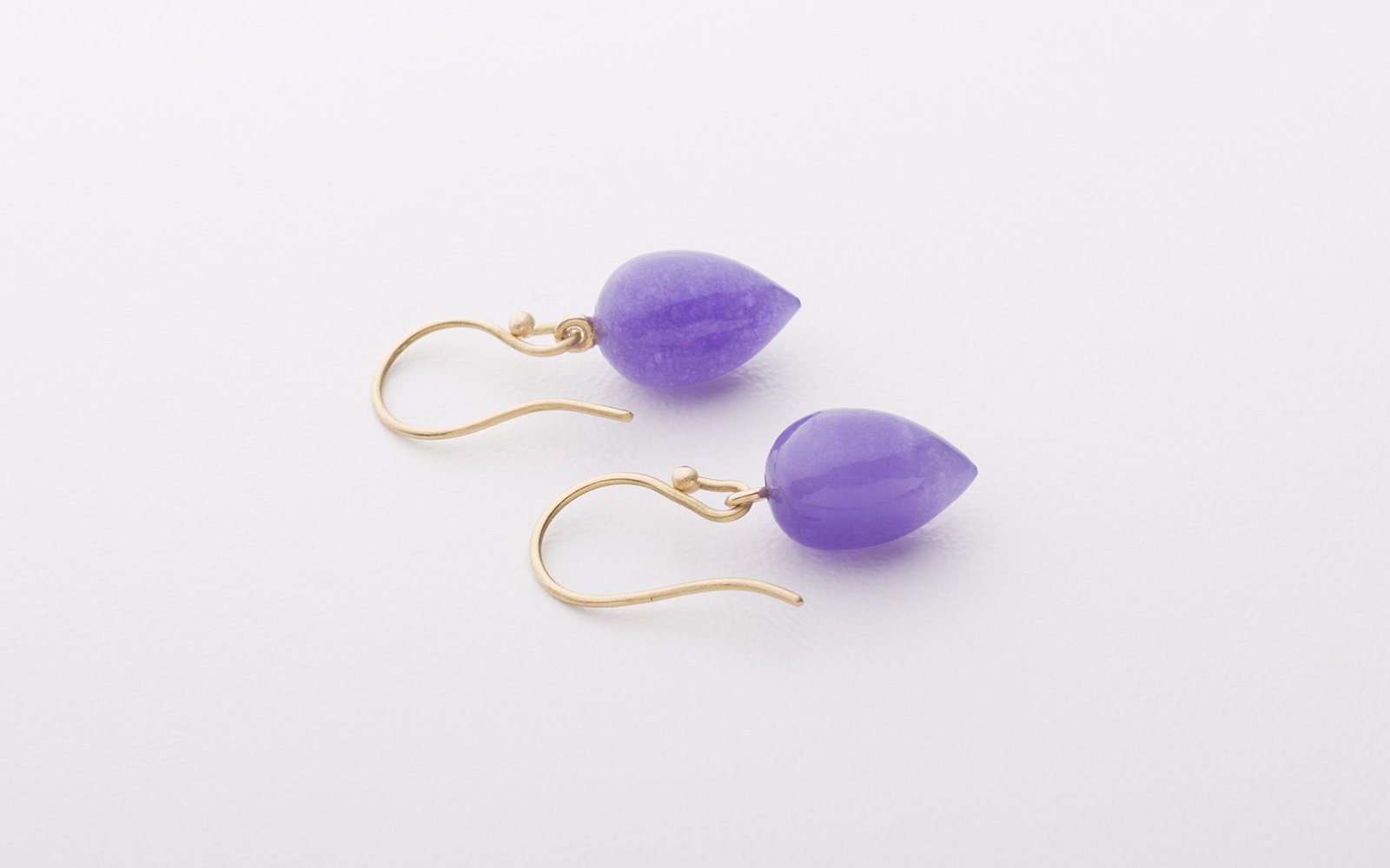 Cone shaped smoothly forged gemstones. The stones are movably connected with the ear hook in 18 ct goldthrough a small eyelet.