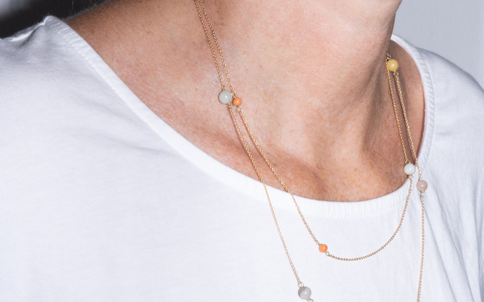 All jewels can be individualized with regard to the selection of gemstones and the compatibility of specific form elements. Also the size of the rings and the length of necklace can be adjusted. Please contact me!
