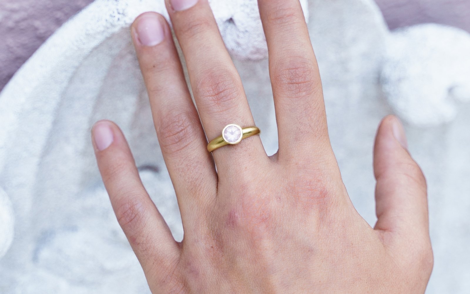 Solitär Ring in 18 kt Gold mit einem eingefassten geschli?enen Quarz.